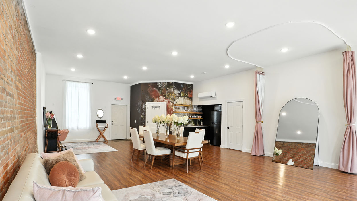 Your wedding day preparation space should be more than just functional—it should inspire confidence, calm nerves, and create picture-perfect memories. Venue 1880 was originally a professional photo studio, and every detail reflects that heritage. From the tall ceilings and exposed original brick walls to the clean white walls that provide a perfect backdrop for photos, this 1,000-square-foot space is designed to capture your bridal party’s joy and anticipation in stunning clarity.